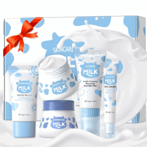 مجموعة العناية بالوجه بالحليب لمكافحة الشيخوخة وحب الشباب والتجاعيد،مع الهيالورونيك، تهدئة المسام، ترطيب عميق 5 قطع