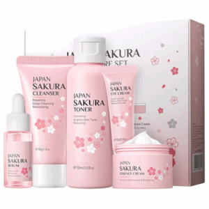 مجموعة الترطيب والنضاره من ساكورا -غسول وتونر وسيرم وكريم للعين وكريم للبشرة