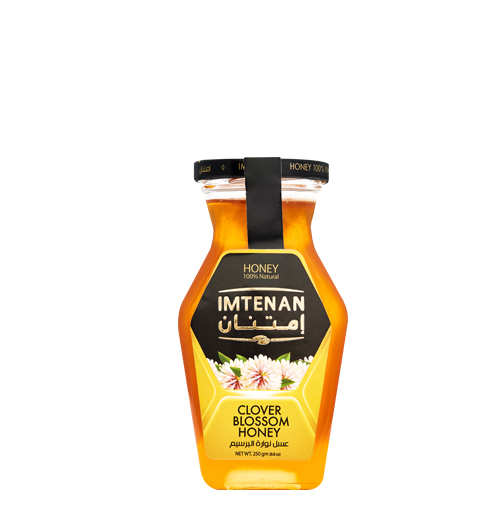 عسل, نوارة البرسيم ,امتنان ,250 جم,يتميز بطعم, هادئ ,ونكهة محببة, يُنتَج من, زهور نوارة ,البرسيم ,الحلو والحجازي