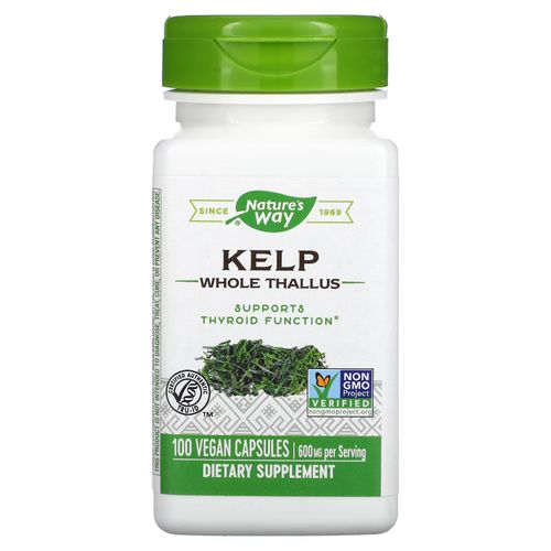عشب البحر هو نوع من الأعشاب البحرية التي تنمو تحت الماء، وهو مصدر ممتاز لليود. تُصدر Nature’s Way® مصادر مستدامة لعشب البحر من مناخات المياه الباردة ، مثل نوفا سكوتيا ، حيث يقوم قاطنو السفن البرية بقطع الأوراق بعناية ، دون اقتلاع النباتات للسماح بإعادة النمو في المستقبل.