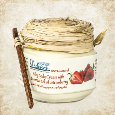 كريم الجسم بزيت (الفراولة) العطرى الطبيعي 100% بتركيبته الغنية بالزيوت الطبيعية يرطب الجسم و يمنحه نعومة لا مثيل لها ويعطره برائحة (الفراولة) المنعشة.