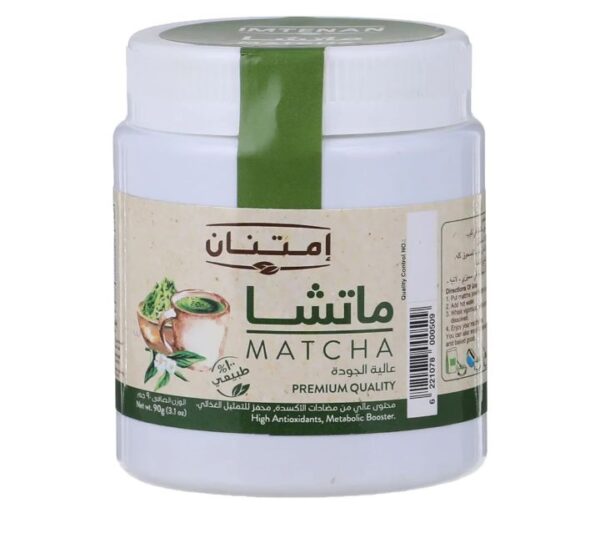 ماتشا شاي أخضر طبيعي 100٪ من امتنان. ماتشا بجودة ممتازة يأتي من نبات الكاميليا سينينسيس، فقد نمت بشكل مختلف مما أعطاه قيمه غذائيه عاليه ومحتوى عالي من الكافيين ومضادات الأكسدة.