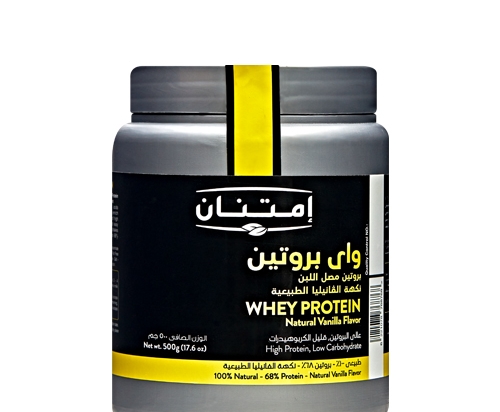مركز بروتين مصل اللبن (طبيعي 100%) من إمتنان. يحتوي على جميع الأحماض الأمينية ليساعد على دعم غذائك اليومي ببروتين عالي القيمة. سهل وسريع التحضير لعمل مشروب لذيذ الطعم. يحتوي علي 68% بروتين نقي.